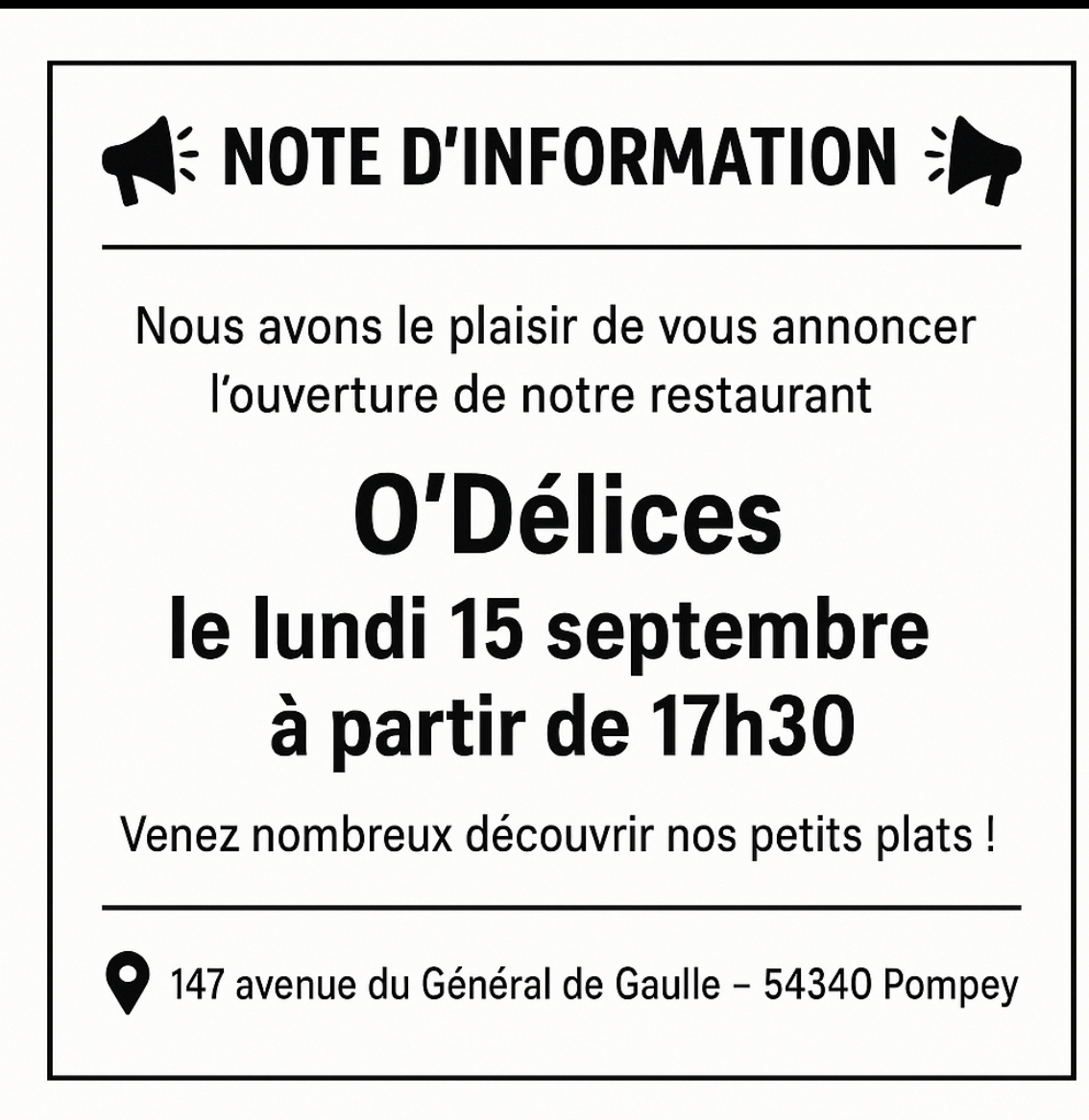 Saveurs à emporter Description: Découvrez nos délicieux kebabs, takos et burgers à emporter dans notre restaurant O’Delices situé à Pompey. Une explosion de saveurs vous attend ! Fraîchement préparés avec des ingrédients de qualité, nos plats sauront ravir vos papilles. Venez vite goûter nos spécialités !